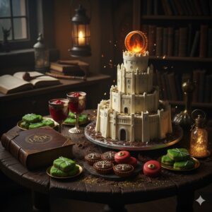 ヨーロッパ菓子の伝統を感じさせつつ、中つ国の世界観にリンクする華やかさと上質さを兼ね備えた、特別な日のギフトに最適な一品です。