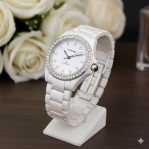 シャネルの「J12 パールホワイト」は、セラミック素材を使用した軽量かつ耐久性の高い時計です。