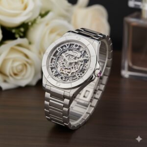 ブルガリの「ルチェア スケルトン」は、女性らしい優雅さとメカニカルな魅力を兼ね備えた一本です。