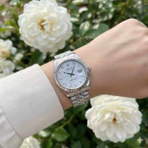 「デイトジャスト 31」は、女性ゴルファーの手元に上品な輝きを添える定番の一本です。