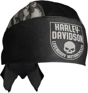 ハーレーらしい存在感を放つポリエステル製バンダナ。