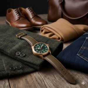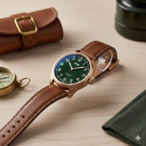 現代的なスペックを備えながらも、ドーム型風防や柔らかなインデックスが、どこか懐かしい空気を漂わせます。