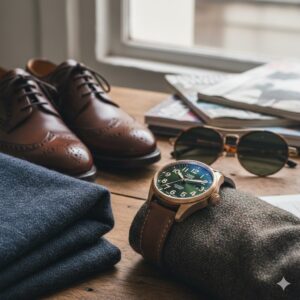 ニットやツイードジャケットとの相性も抜群で、「わかる人にはわかる」大人の余裕を演出できますよ。