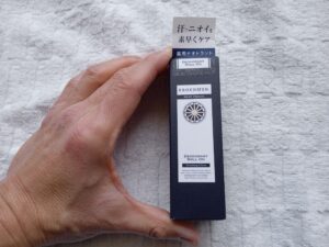 またそれが乾くとけっこう嫌なにおいを発するので、夏場はこういうデオドラントアイテムは必須。