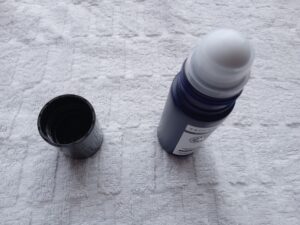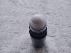 使用後のロールオン。ボール部分に液がにじむのが見える。