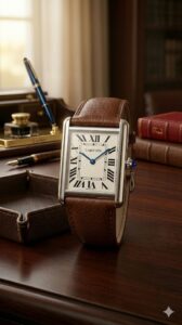 1917年に誕生したタンクは、直線的なケースとローマ数字インデックスを特徴とするドレスウォッチの名作。