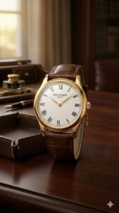無駄を削ぎ落としたスタイルの中に確かな品格を感じさせるこの時計は、映画の静かな緊張感と主人公のミステリアスな魅力を象徴する存在となっていますよ。